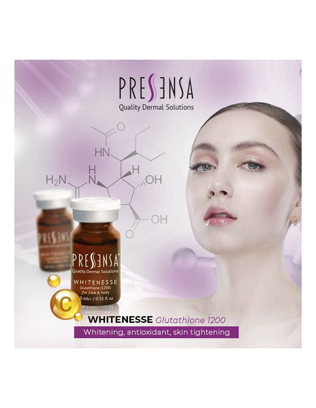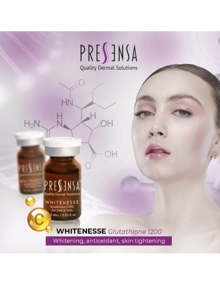 Glutatión 1200: Conocido por sus poderosas propiedades antioxidantes, el glutatión actúa como un protector celular esencial. Su capacidad para desintoxicar y aumentar la respuesta inmune ayuda a combatir el estrés oxidativo, previniendo así la apoptosis de los tejidos y favoreciendo una piel más saludable y joven.