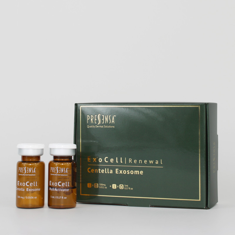 Exocell Centella Exosome – Renewal es un producto en dos viales diseñados para restaurar la vitalidad y mejorar la calidad de la piel. Este tratamiento combina exosomas derivados de Centella Asiática con una solución activadora que potencia la hidratación y refuerza la función antioxidante. La mezcla de ambos componentes en el momento previo a su aplicación garantiza la máxima estabilidad y eficacia de los activos.