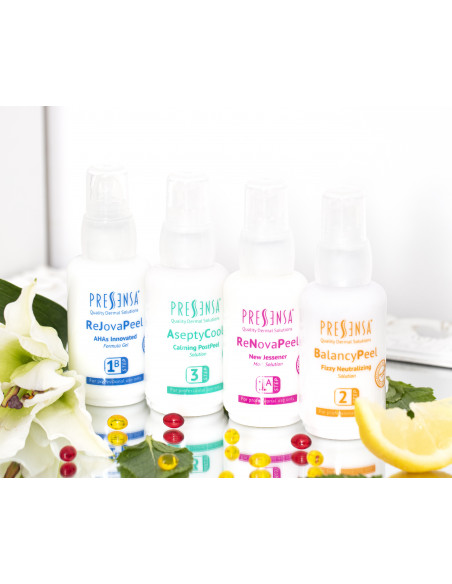 The new advanced formulas of effective acids that help reduce the appearance of melasma, freckles, acne and mild cases of rosacea. It is also an excellent choice for minimizing signs of ageing and fine lines and wrinkles. The recommended frequency of treatment depends upon the severity of the initial skin condition and the number of layers of the peel applied.