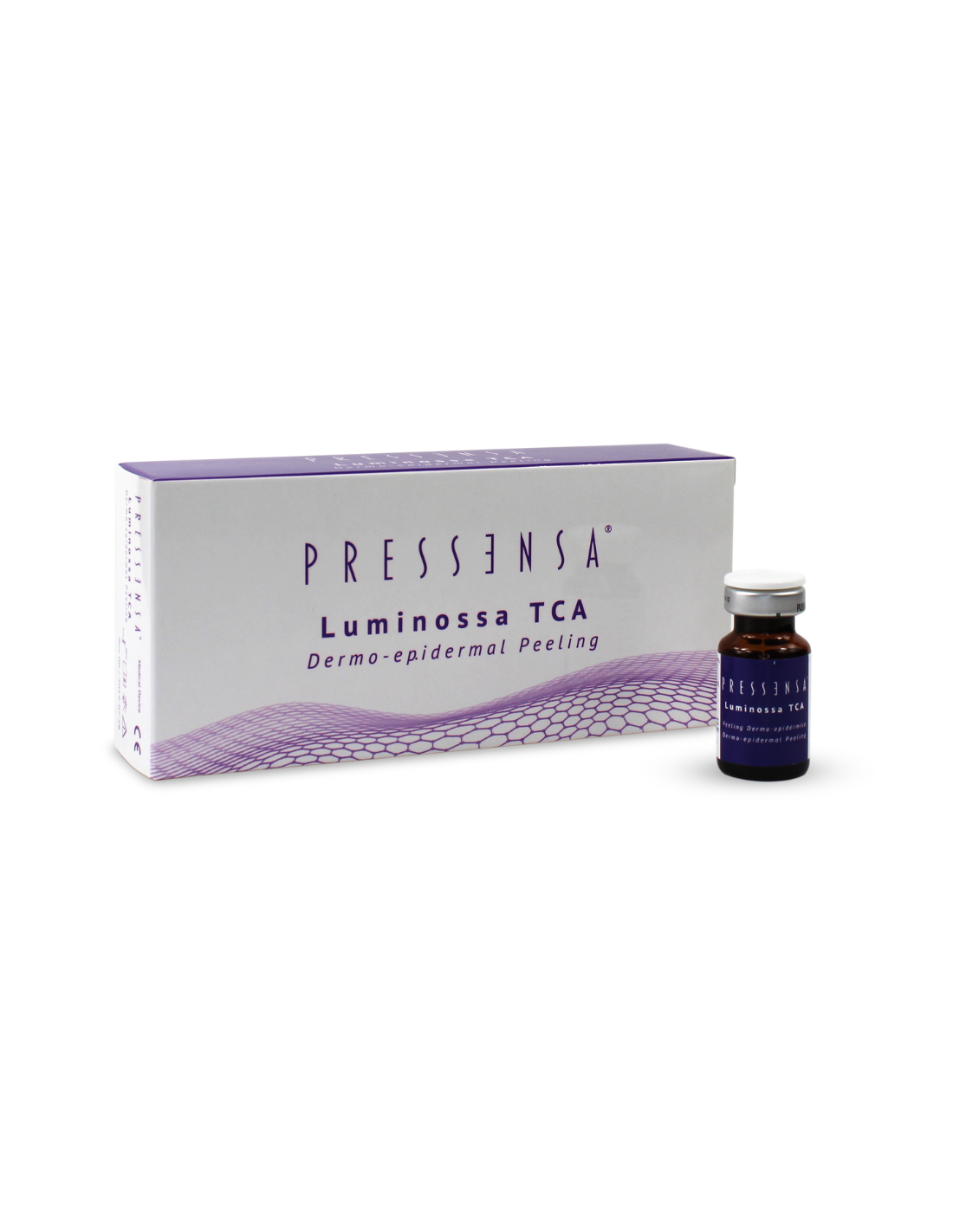The LUMINOSSA TCA Peeling- Medium to deep is a medical CLASS I product based on TRICHLOROACETIC ACID (TCA) stabilized with alpha-hydroxy acids. Also contains Mandelic Acid and KOJIC ACID.