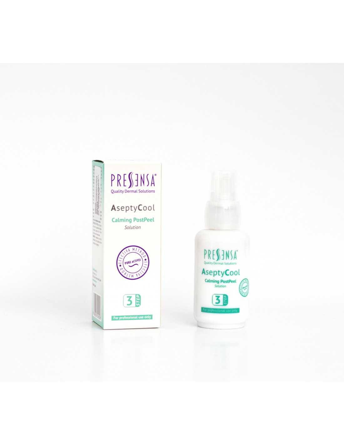 Solución formulada con ingredientes activos para calmar y enfriar la piel, especialmente que ha sido sometida a la acción de productos de exfoliación.