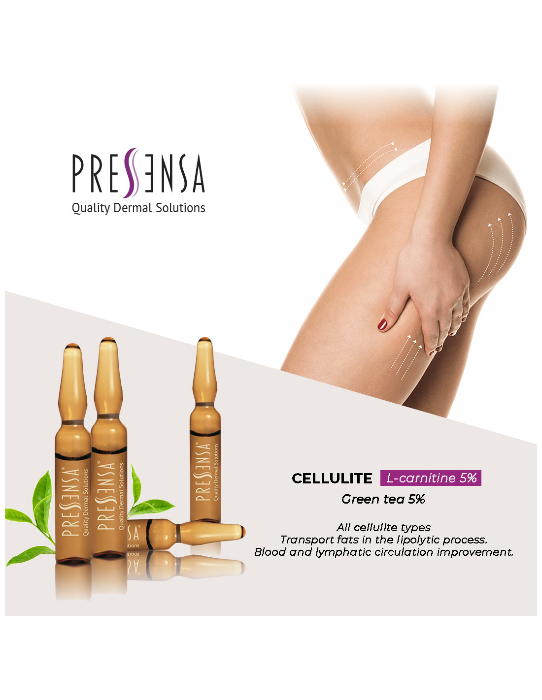 Стерильный раствор L-карнитина, который является транспортным агентом в процессе липолиза. Активно выводит застойную жидкость и устраняет проявления отечного целлюлита.