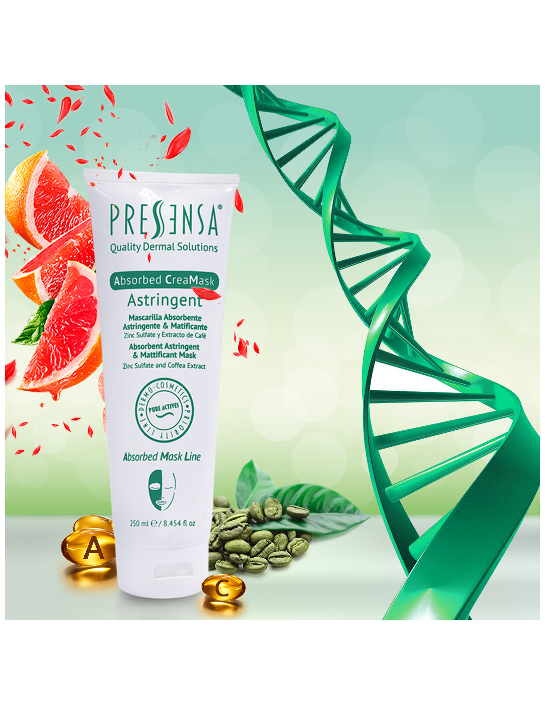 Absorbent astringent, mattificant mask with Zinc Sulfate and Coffea Extract